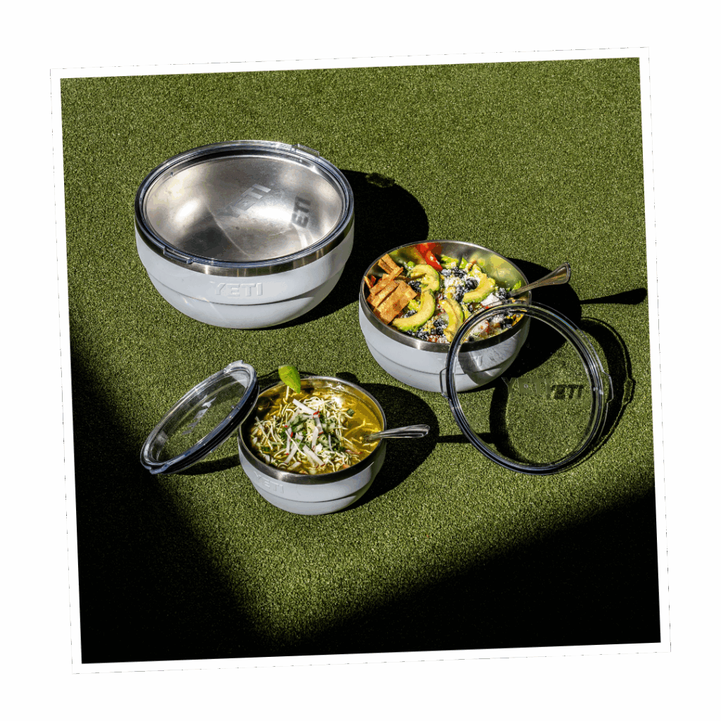 A new favorite, this three-bowl Rambler set holds the cold and keeps the heat from backyards to basecamps.